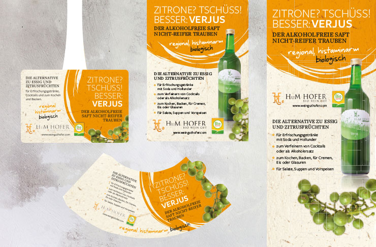 Bioweingut Hofer Auersthal Auftraggeber: Bioweingut Hofer Auersthal // Branche: Lebens- und Genussmittel // Leistungsbereiche: P.o.S. – Kampagne „VERJUS“ Älter Ihre Ideen & Wünsche Neuer Kulturveranstaltungen der Marktgemeinde Hagenbrunn